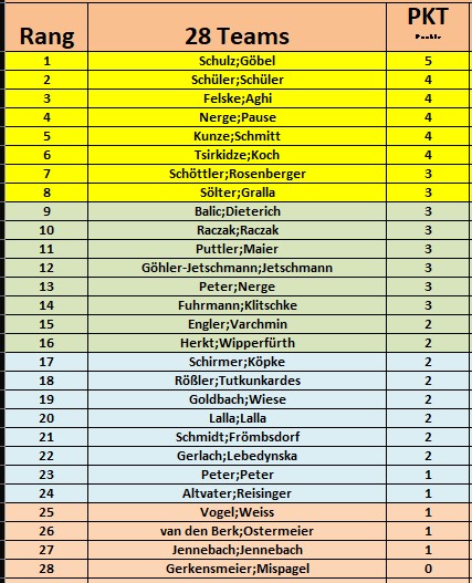 Der 5. outdoor cup wurde von Mathis Schulz und Mario Göbel gewonnen, die alle Partien für sich entschieden. Mit vier Siegen konnten 5 Teams das Turnier beenden, es waren 28 Teams bei gutem Wetter gestartet.